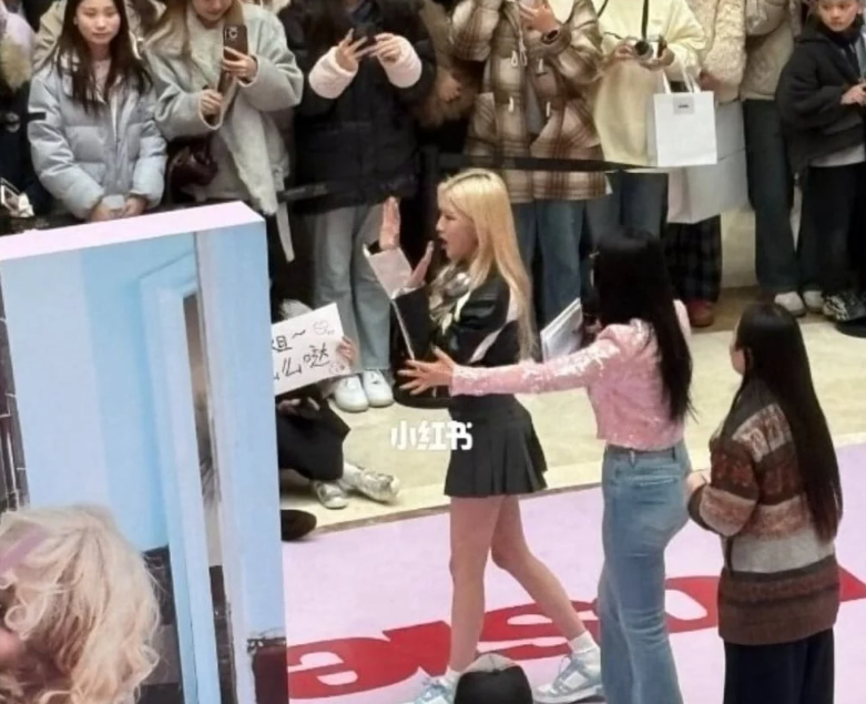 Daisy với mái tóc vàng xuất hiện tại sự kiện pop-up ở một trung tâm thương mại. Ảnh: RedNote