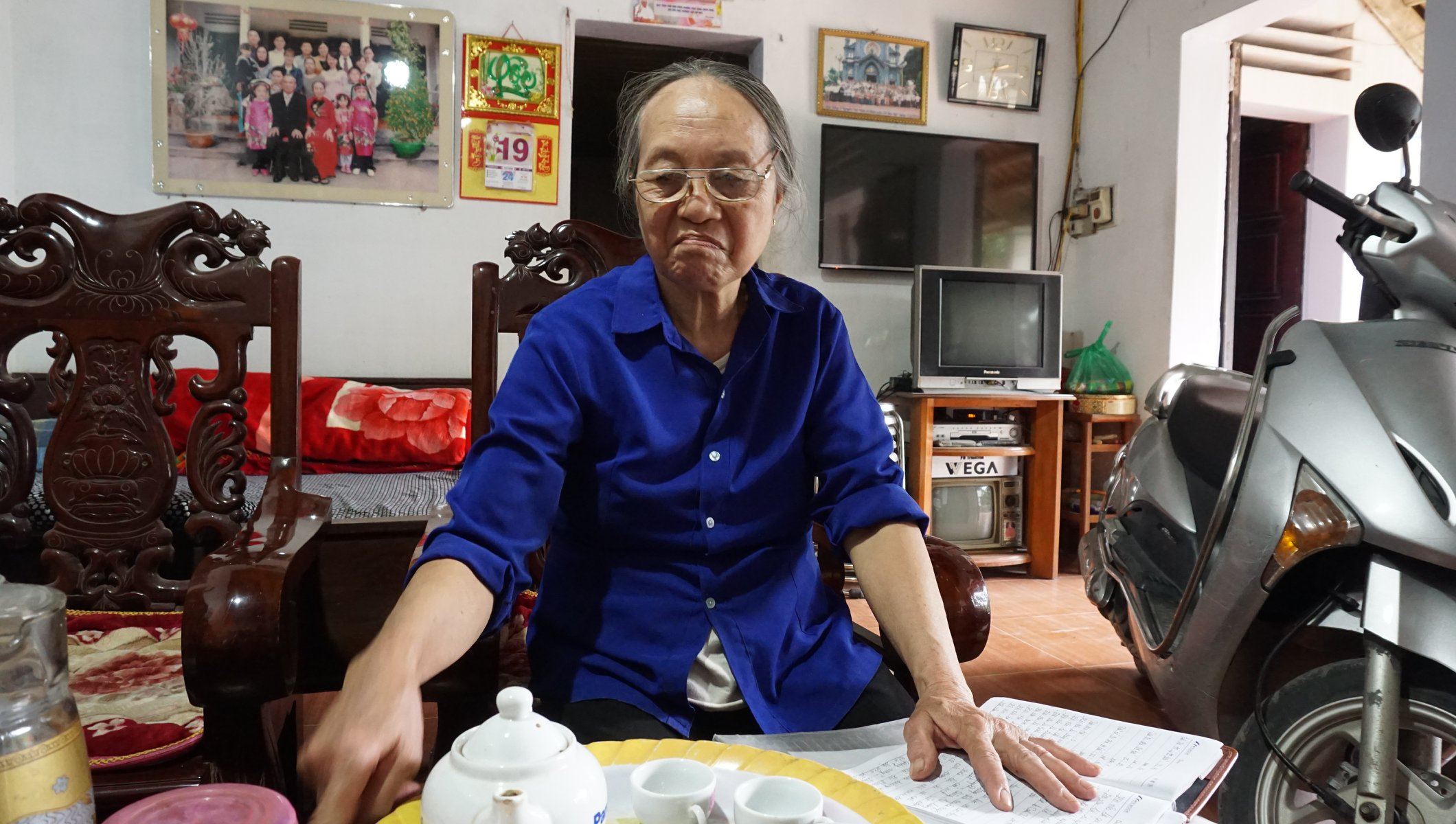 Ngồi cạnh cụ Thuận, bà Nghi cho hay, con cái lớn ở riêng, bà sống với cháu nội. Thời còn sức khỏe thì ra đồng cấy cày cùng mọi người, về già thì cụ Nghi trồng rau nơi vườn nhà, rồi sang chơi nhà hàng xóm hoặc chờ đón các cụ sang cùng uống chén nước, trò chuyện tuổi già.