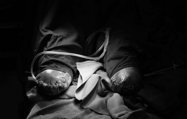 Do tổn thương quá nặng, bệnh nhân được chỉ định cắt cụt cả 2 bàn chân để tránh nguy cơ nhiễm trùng lan rộng thêm, bảo toàn tính mạng. Ảnh BVCC