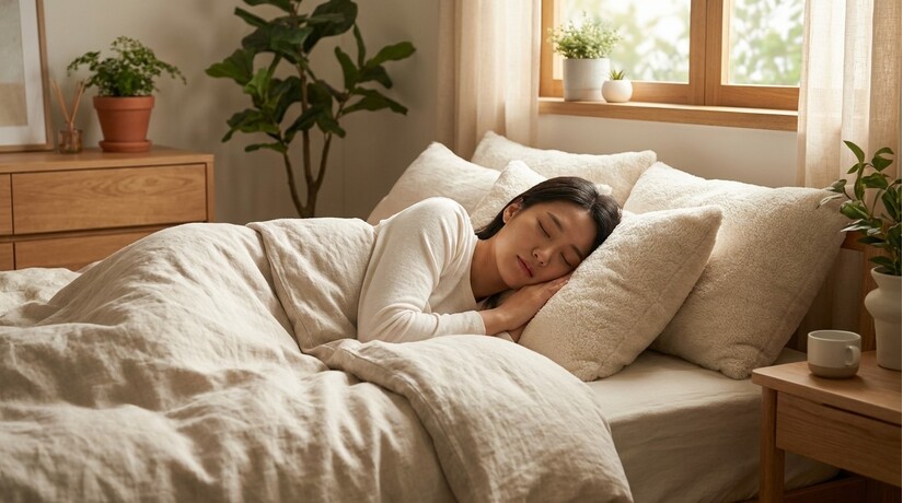 Cách thực hiện: Bạn có thể dùng thêm một chiếc gối hoặc kê một tấm ván nhỏ dưới nệm ở phần đầu giường để tạo độ nghiêng nhẹ nhàng cho cơ thể khi ngủ.