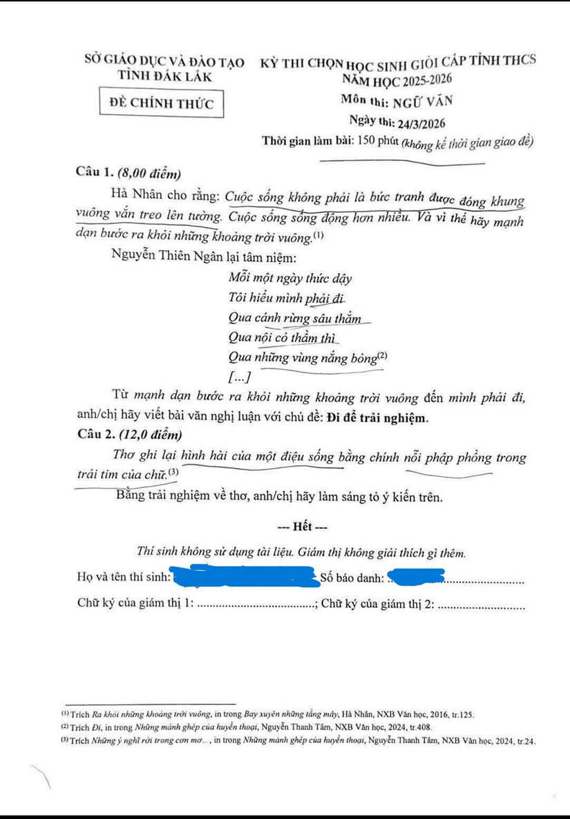 Ngày 25/3, Sở GD&ĐT Đắk Lắk cho biết, sau khi tiếp nhận phản ánh về đề thi học sinh giỏi tỉnh cấp THCS năm học 2025-2026 ở môn Ngữ văn có nhiều lỗi chính tả được lan truyền trên mạng xã hội, các phòng chuyên môn, nghiệp vụ đã xác minh.
