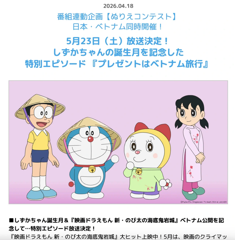 Tập phim đồng thời nằm trong chiến dịch quảng bá Doraemon Movie 45 sắp ra mắt tại thị trường Việt Nam - Ảnh: Shin-Ei Animation