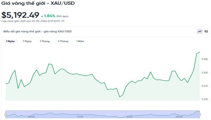 Theo Kitco, giá vàng thế giới ghi nhận lúc 4h30 hôm nay theo giờ Việt Nam giao ngay ở mức 5,192.49 USD/ounce. Giá vàng hôm nay tăng 1,84% so với hôm qua. Quy đổi theo Tỷ giá USD trên thị trường tự do (26.709 VND/USD), vàng thế giới có giá khoảng 167,2 triệu đồng/lượng (chưa tính thuế, phí). Như vậy, giá vàng miếng SJC đang cao hơn giá vàng quốc tế khoảng 17,4 triệu đồng/lượng.