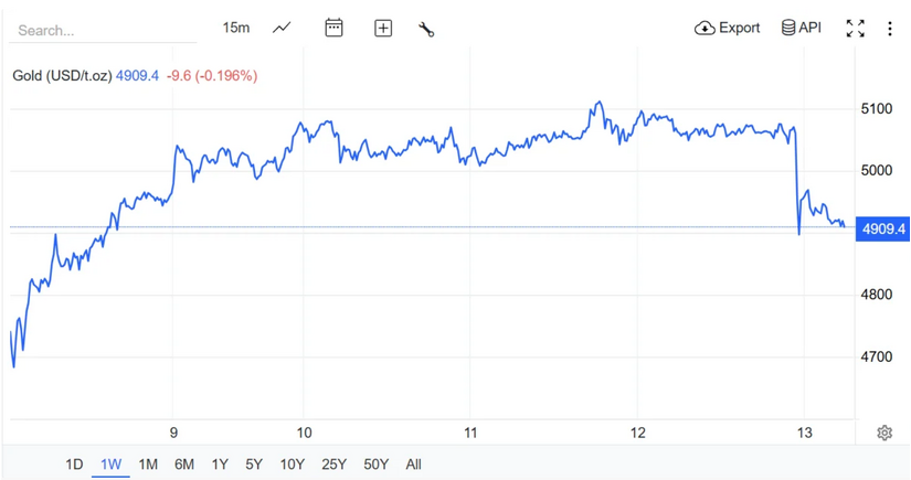 Giá vàng thế giới giao ngay trên thị trường châu Á lúc 6 giờ 30 phút sáng nay ngày 13/2 (giờ Việt Nam) giao dịch ở quanh ngưỡng 4.909 USD/ounce, giảm mạnh 133 USD/ounce so với cùng thời điểm hôm qua.