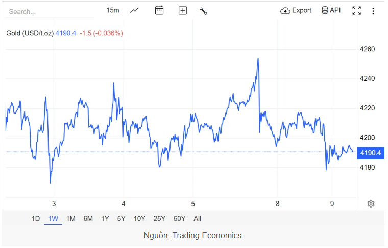 Giá vàng thế giới giao ngay trên thị trường châu Á lúc 7 giờ 45 sáng nay ngày 8/12 (giờ Việt Nam) giao dịch ở quanh ngưỡng 4.190 USD/ounce, giảm 20 USD/ounce so với chốt phiên tuần vừa qua.