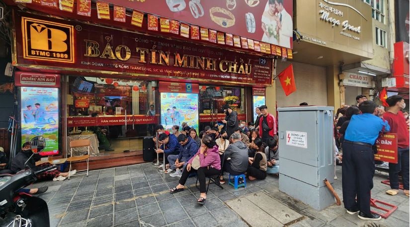 Nhân viên cửa hàng Bảo Tín Minh Châu (29 Trần Nhân Tông, Hà Nội) cho biết, cửa hàng hôm nay bán ra theo nhu cầu mua của khách hàng. Người mua từ 2 lượng vàng trở xuống sẽ được nhận ngay sản phẩm, còn mua nhiều hơn sẽ nhận giấy hẹn đến ngày 9/4.