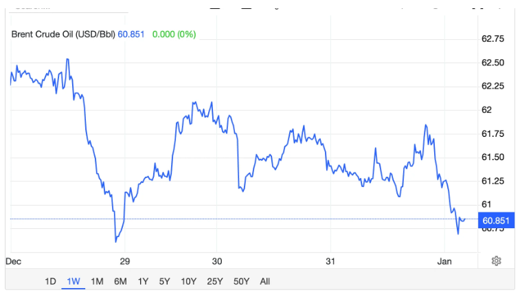 Trang Trading Economics nhận định giá dầu thô Brent kỳ hạn đã giảm xuống còn 61,1 USD/thùng vào ngày cuối cùng của năm 2025, hướng tới mức giảm hàng năm mạnh nhất kể từ năm 2020 do lo ngại về tình trạng dư cung. Các nhà đầu tư hiện đang theo dõi cuộc họp sắp tới của OPEC+, các diễn biến địa chính trị và báo cáo tồn kho của Mỹ.