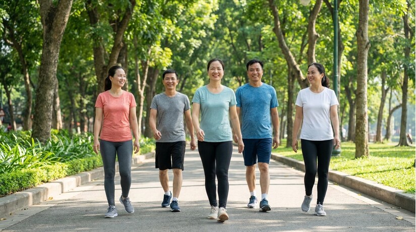 Các bài tập phù hợp bao gồm đi bộ nhanh, chạy bộ, bơi lội, đạp xe, yoga hoặc các bài tập aerobic cường độ vừa phải. Mục tiêu là duy trì cường độ tập luyện khuyến nghị khoảng 150 phút mỗi tuần, chia thành ít nhất 3-5 buổi. Sự đều đặn quan trọng hơn cường độ quá cao ban đầu. Bắt đầu từ từ và tăng dần để cơ thể thích nghi.