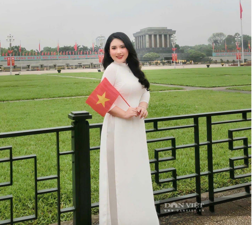 Chị Thanh Bình cùng tà áo dài truyền thống trước Quảng trường Ba Đình. Ảnh: Nhật Hà