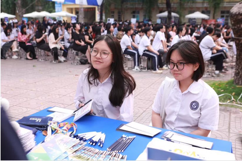 Học sinh lớp 12, Trường THPT Yên Hòa, Hà Nội trong một hoạt động tư vấn tuyển sinh năm 2026. Ảnh: Đình Tuệ.