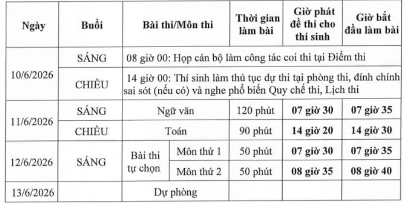Chi tiết lịch thi tốt nghiệp THPT năm 2026.