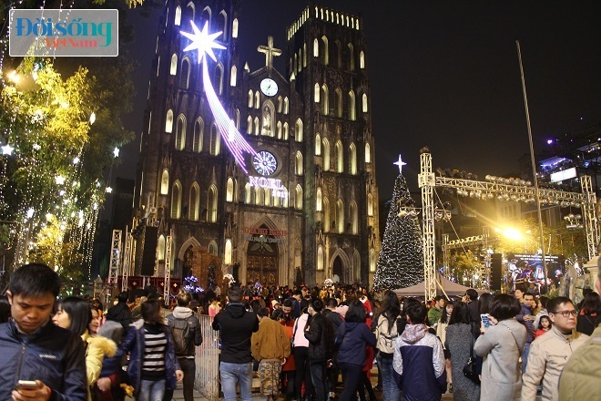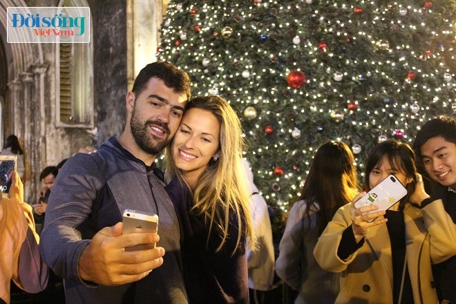 Rất nhiều du khách nước ngoài cũng ra đường tận hưởng không khí Noel ở Hà Nội