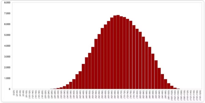 Độ lệch chuẩn đạt 141,2, cho thấy độ phân tán hợp lý, đảm bảo khả năng phân loại thí sinh.