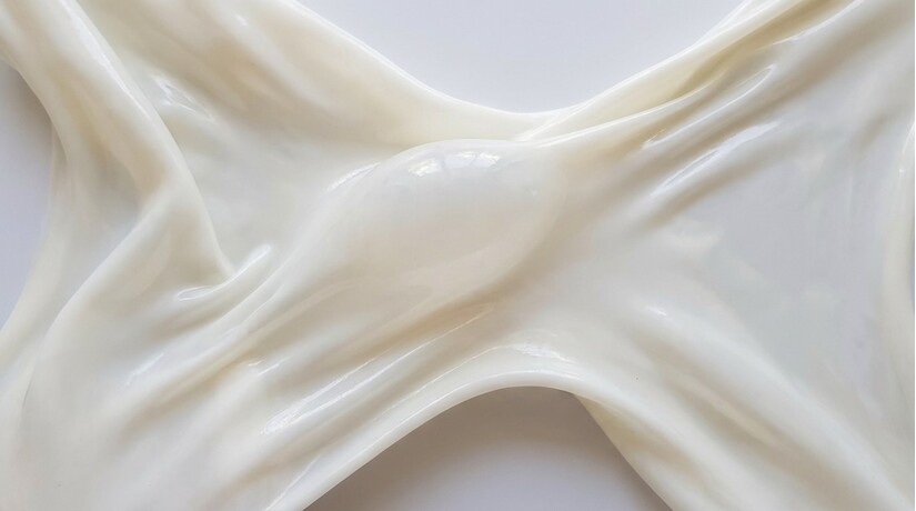 Cận cảnh một tấm cao su thiên nhiên được kéo giãn, thể hiện độ đàn hồi và kết cấu mịn màng của vật liệu
