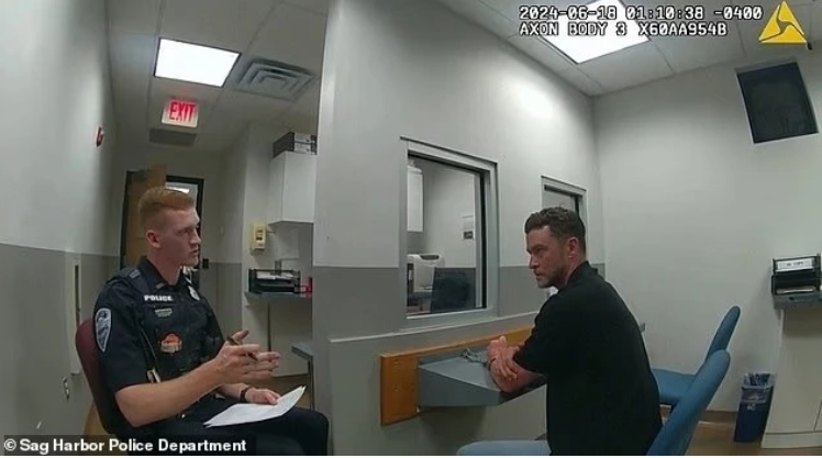 Theo đoạn video từ camera gắn trên người cảnh sát do Daily Mail công bố, vụ bắt giữ Justin Timberlake diễn ra vào tháng 6 năm 2024 tại khu vực Hamptons, Mỹ. Lực lượng cảnh sát Sag Harbor đã tiến hành dừng phương tiện sau khi giọng ca này rời khỏi American Hotel. Dựa trên những quan sát trực tiếp tại hiện trường cùng kết quả kiểm tra độ tỉnh táo không đạt yêu cầu, cơ quan chức năng quyết định tạm giữ anh với cáo buộc điều khiển xe trong tình trạng say xỉn.