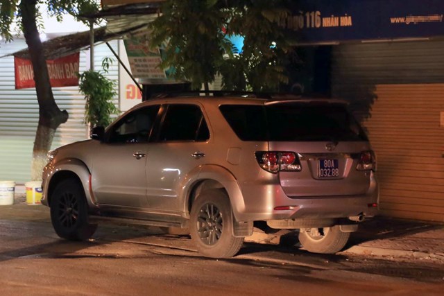 Xe ô tô của lực lượng chức năng đỗ trong ngõ nhà ông Phùng Anh Lê. Ảnh: Dân Trí.