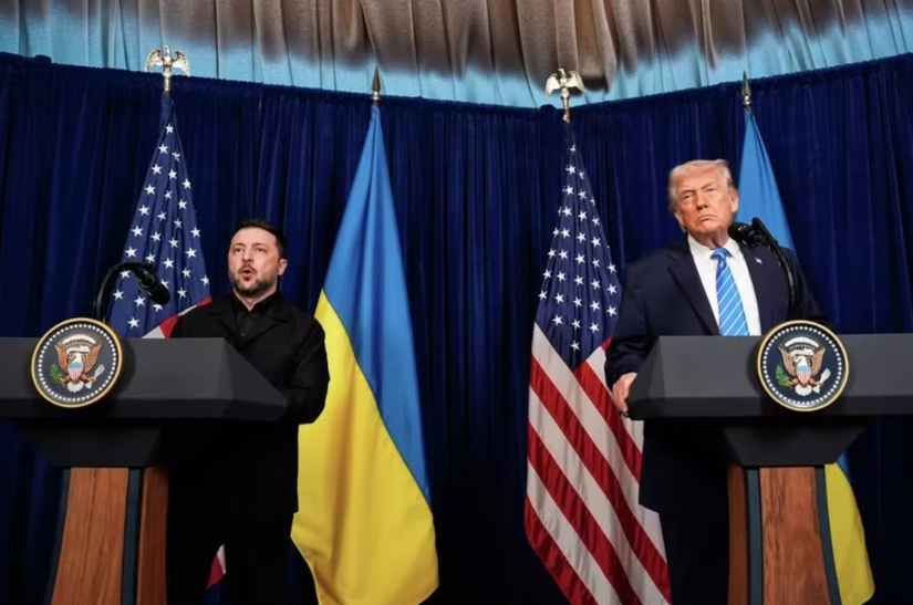 Tổng thống Donald Trump và người đồng cấp Ukraine Zelensky trong một cuộc gặp tại khu nghỉ dưỡng Mar-a-Lago ở Florida.