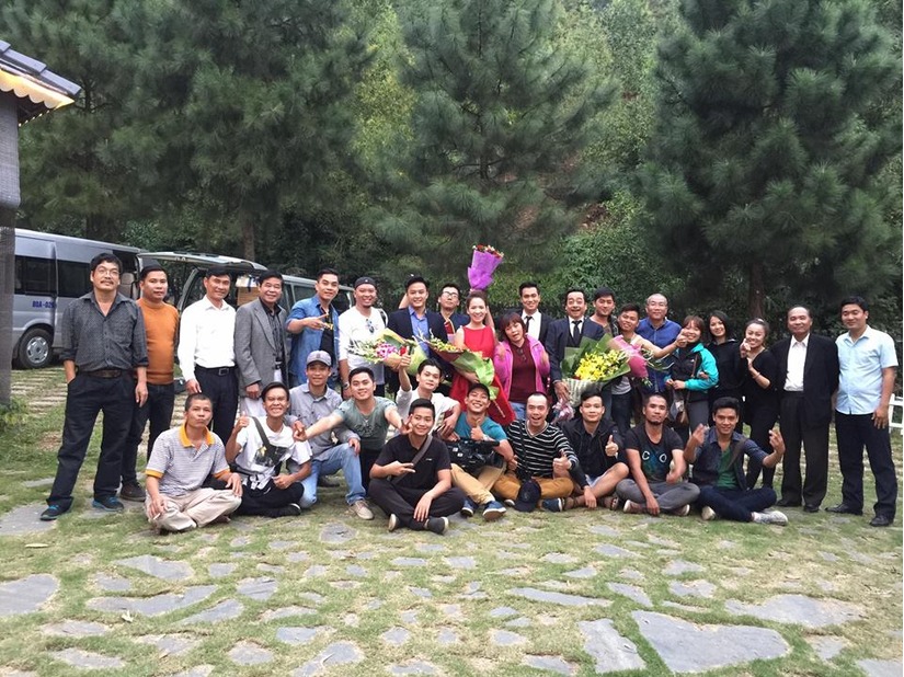 Thanh Bi thường chụp lại những khoảnh khắc vui đùa bên các thành viên của đoàn làm phim