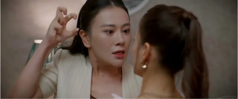 Mỹ Anh - với vị thế là người chủ động hơn, bày ra tỳ tỷ cái bẫy để dằn mặt đối thủ - đã chinh phục khán giả bằng những câu thoại sắc bén, bẻ gãy những lý lẽ chống trả mà kẻ thứ ba đưa ra. Chính sự bình tĩnh đến ngạc nhiên, cùng thế trên cơ của nhân vật đã mang đến cho người xem cảm giác thích thú, nhất là khi kẻ bị áp đảo vốn là kiểu nhân vật “tiểu tam điển hình” của khán giả màn ảnh nhỏ.