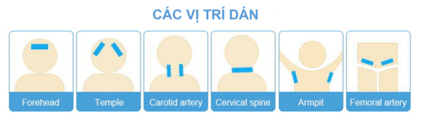Miếng dán hạ sốt hoạt động hiệu quả nhất khi được dán ở những vị trí có nhiều mạch máu lớn hoặc gần các trung tâm điều nhiệt của cơ thể. Đây là những điểm giúp nhiệt được hấp thụ và khuếch tán ra ngoài nhanh nhất: