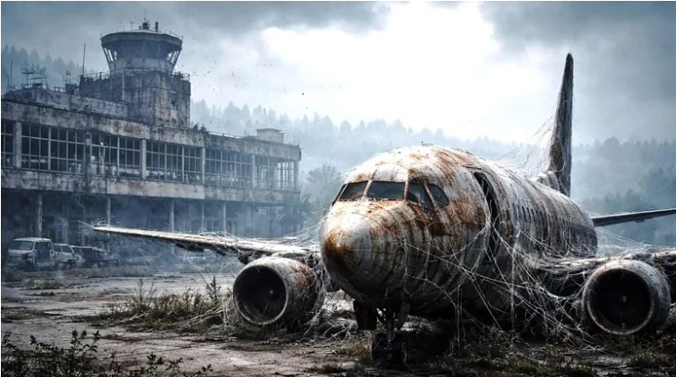 Hình ảnh AI minh họa sự thiếu hụt nhiên liệu khiến nhiều ngành trong đó có hàng không gặp khó khăn, thậm chí ngừng hoạt động. Nguồn RIA