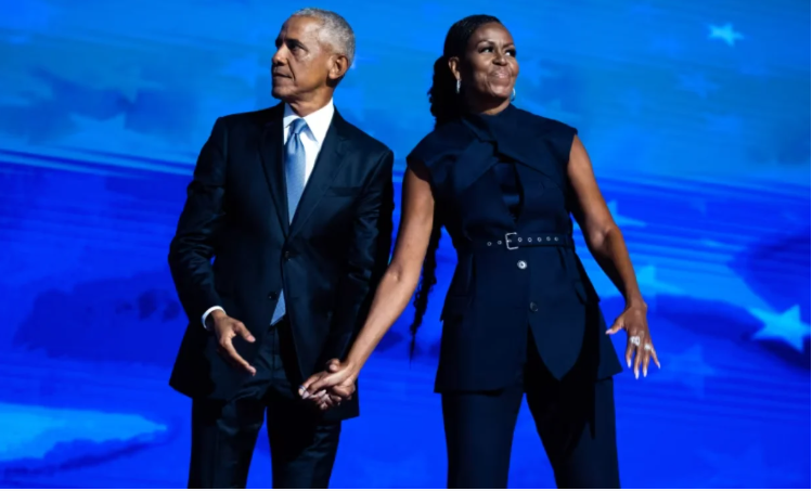 Cựu Tổng thống Barack Obama và cựu Đệ nhất phu nhân Michelle Obama xuất hiện trên sân khấu trong đêm thứ hai của Đại hội toàn quốc Đảng Dân chủ tại Chicago tháng 8/2024. Ảnh: GI.