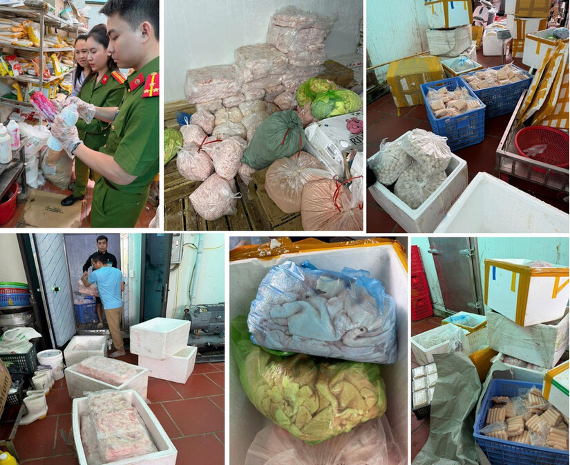 Qua kiểm tra, lực lượng chức năng đã phát hiện, thu giữ gần 1 tấn nguyên liệu, phụ gia thực phẩm và sản phẩm thành phẩm gồm: thịt xay sẵn, mỡ lợn, da bì lợn, cá ba sa, xúc xích, nem chua rán, cá viên cùng nhiều loại phụ gia như bột màu, phẩm màu, bột phụ gia, bột thính, bột quế… Toàn bộ số hàng hóa trên đều không có tem nhãn, không ghi hạn sử dụng, không bảo đảm điều kiện an toàn thực phẩm theo quy định.