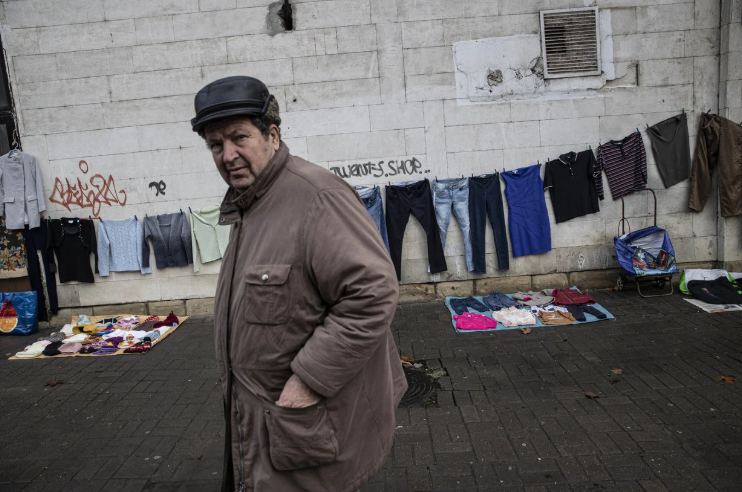 Hình ảnh khu chợ trời, nơi bày bán quần áo, giày dép và nhiều mặt hàng khác, được nhìn thấy trên vỉa hè đại lộ Gagarin ở Chisinau, Moldova vào ngày 10 tháng 12 năm 2022. Ảnh Getty Images