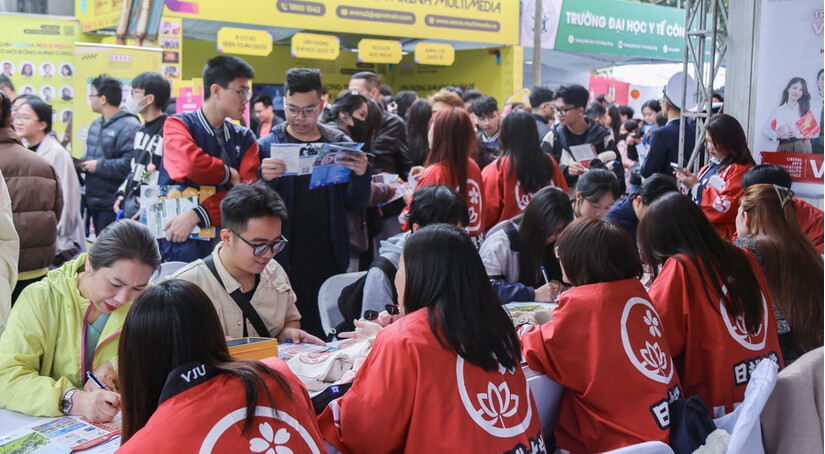 Hoạt động tư vấn tuyển sinh của Trường Đại học Việt Nhật (Đại học Quốc gia Hà Nội). Ảnh: NTCC