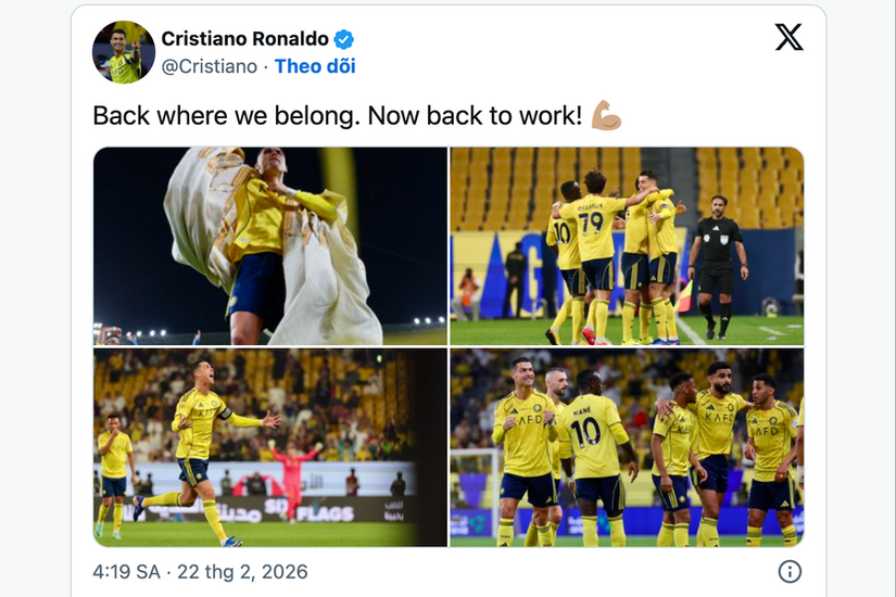 Trở lại sau “cuộc đình công”, tiền đạo 41 tuổi lập tức ghi bàn trong chiến thắng 2-0 trước Al-Fateh tại vòng 22 Saudi Pro League. Đến vòng đấu tiếp theo, anh tiếp tục bùng nổ với cú đúp, góp công lớn giúp Al-Nassr đè bẹp Al-Hazem 4-0 hôm 22/2.