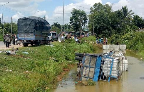 Đầu xe tại bị ngập nước nhưng tài xế may mắn thoát chết sau khi phá được cửa bò ra ngoài. Riêng tài xế và phụ xe tải biển số 60C - 305.10 bị tử vong trong cabin. Tại hiện trường, phần đầu xe tải biển số 60C - 305.10 bẹp dúm, hư hỏng nặng.