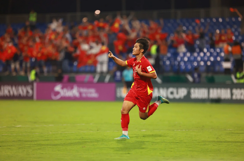 Quốc Việt ăn mừng sau bàn mở tỷ số. Ảnh: AFC.