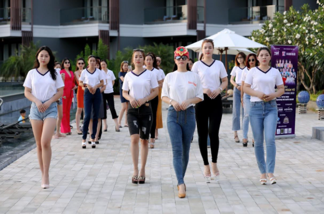 Các thí sinh tập catwalk cùng đạo diễn MC, HLV Trúc Thy