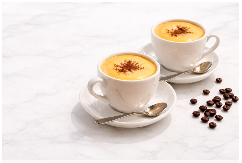 Cà phê trứng, có nguồn gốc từ Việt Nam, được pha chế bằng cách trộn lòng đỏ trứng với đường và sữa đặc. Ảnh: AI