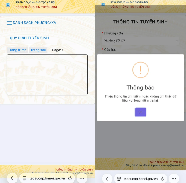Phụ huynh Nguyễn Thị Huyền Trang, phường Bồ Đề, Hà Nội, có con chuẩn bị vào lớp 1 cho biết: "Hiện trên cổng thông tin của Sở giáo dục và Đào tạo Hà Nội chưa có thông tin tuyển sinh năm học 2026-2027. Khi tôi tìm kiếm, hệ thống báo không có dữ liệu hay bất kỳ thông tin nào, nên không biết sau sáp nhập con sẽ học ở trường nào".