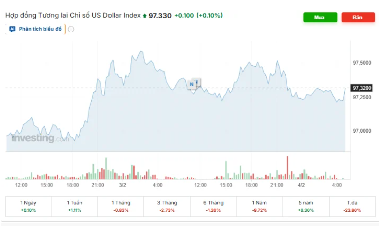 Diễn biến chỉ số DXY trong phiên vừa qua. Nguồn: investing.com.