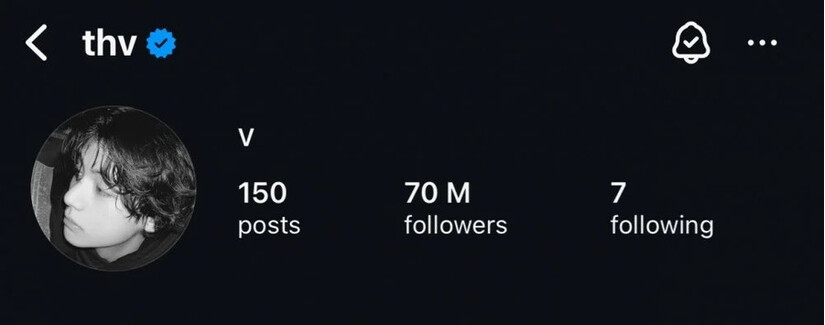 Tài khoản chính thức của V có tên "thv" đã đạt được thành tích này chỉ với 150 bài đăng, cho thấy tầm ảnh hưởng đặc biệt của anh ấy trên nền tảng này.
