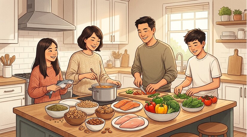 Gia đình cùng nhau chuẩn bị các thực phẩm giàu kẽm giúp bổ sung kẽm hiệu quả